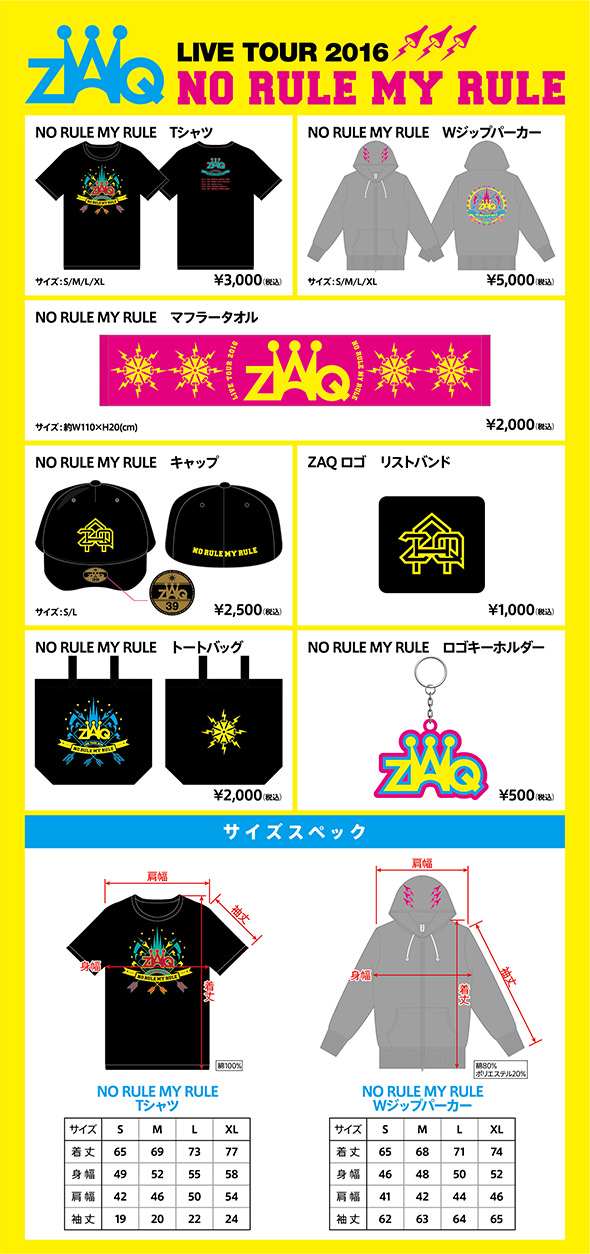 ZAQ LIVE TOUR 2016「NO RULE MY RULE」グッズ公開!