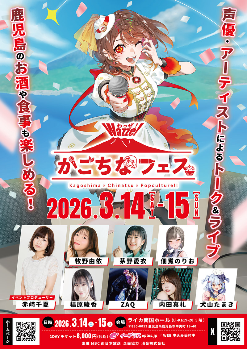 2026年3月14日(土)、15日(日)に鹿児島にて開催される『Wazze!かごちなフェス』にZAQの出演が決定!