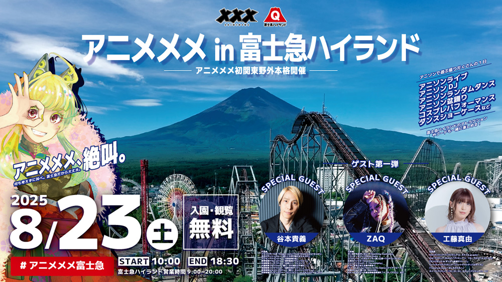 8/23(土)に富士急ハイランドで開催の『アニメメメ in 富士急ハイランド』にZAQの出演が決定しました!